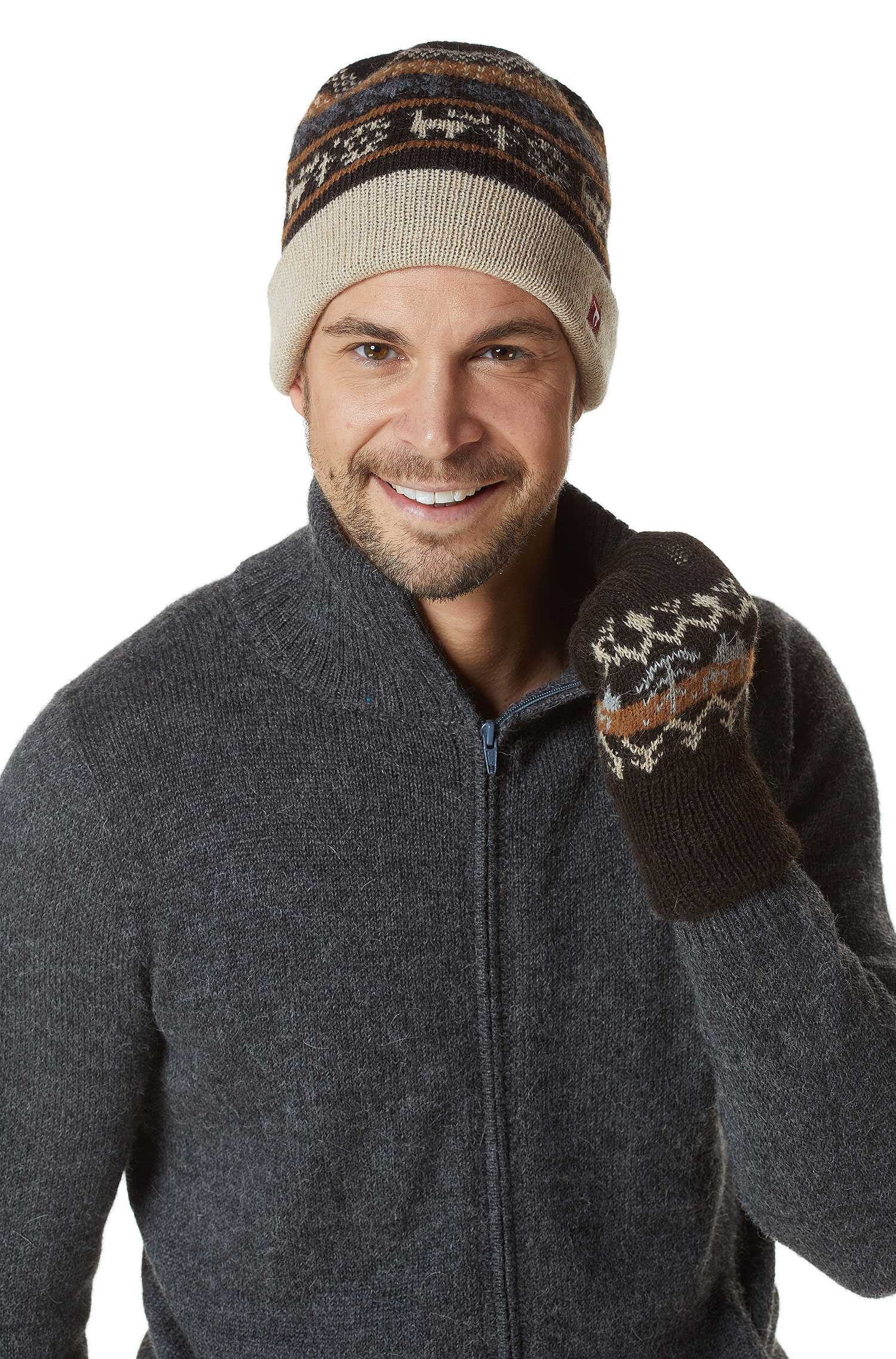 Die Besonderheit ist das wendbare Design, so lassen sich Mützen und Handschuhe für Erwachsene von beiden Seiten tragen. Eine Seite ist in buntem Jacquard-Strick gearbeitet, die andere Seite unifarben. Kenner lieben das typisch rustikale Design und die besonders dicke und flauschige Qualität.