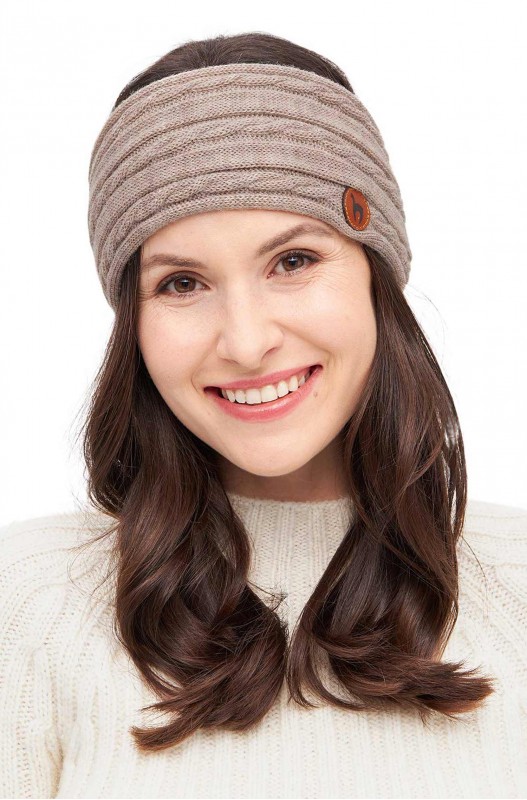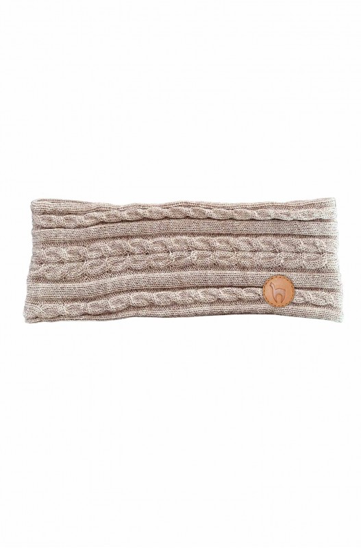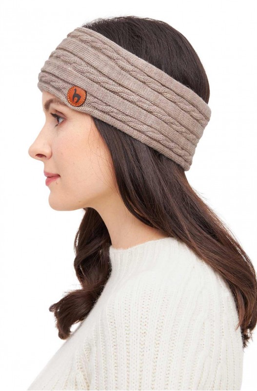 Kuschelweiches Stirnband aus reinem Baby Alpaka. Mit elegantem Alpaka-Lederlogo.